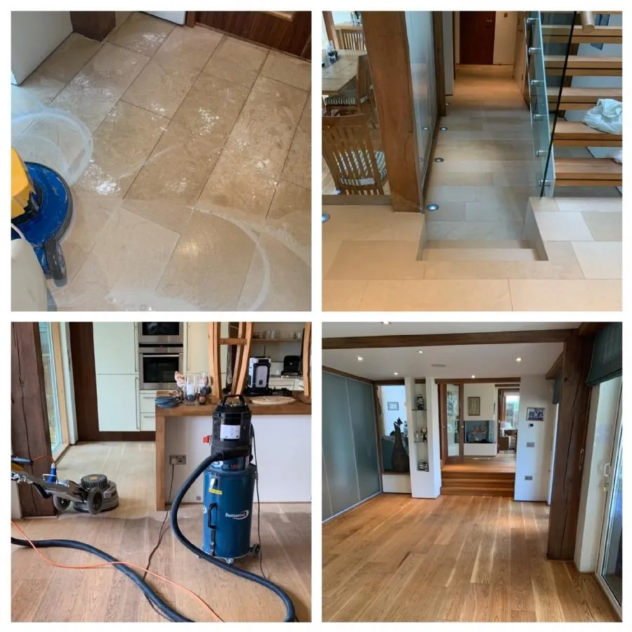 Limestone and engineered wood floor restoration in Rock Cornwall